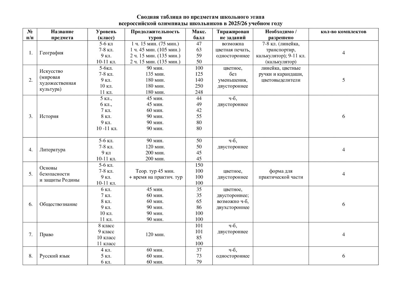 Школьный этап всероссийской олимпиады школьников - 2025/26