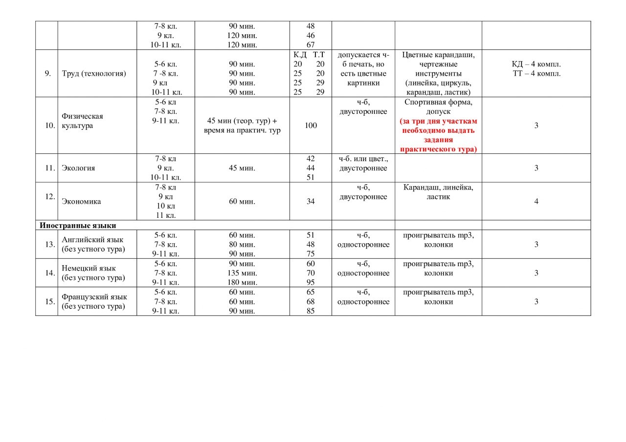 8) Порядок проведения по 6 предметам. Сириус