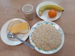 15.12.2025 - каша молочная вязкая пшеничная, кофейный напиток молоком сгущеным, бутерброд с сыром, банан, мандарин