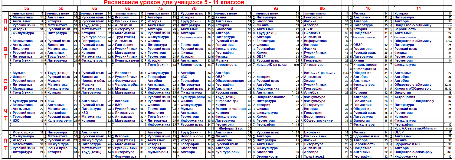 Расписание уроков